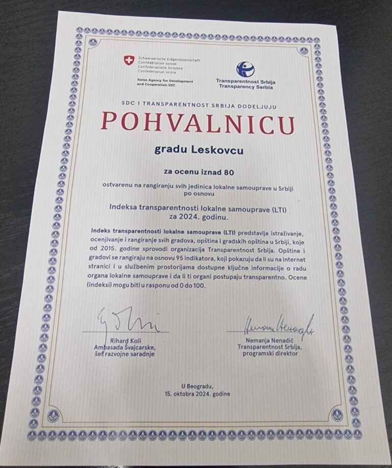 Швајцарска агенција за развој и сарадњу (SDC) и Транаспарентност Србија…