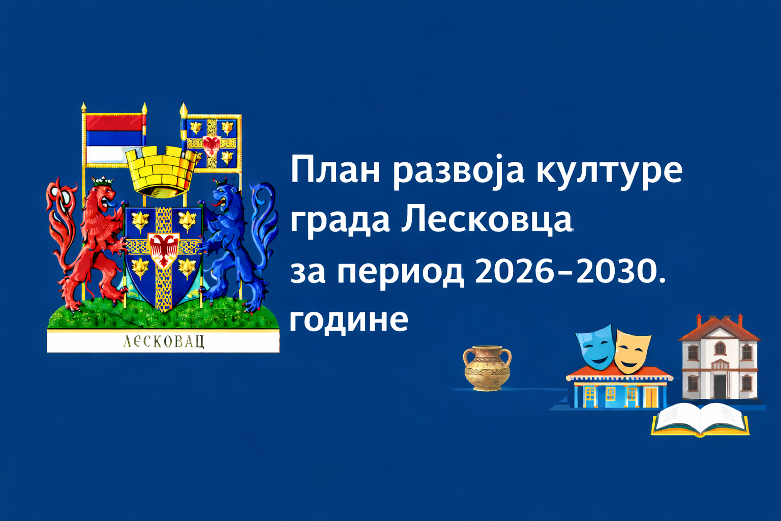 Град Лесковац је започео процес израде Плана развоја културе за период 2026-2030. године. Поштовани суграђани, позивамо вас да учествујете у попуњавању упитника који се спроводи у оквиру процеса израде Плана.