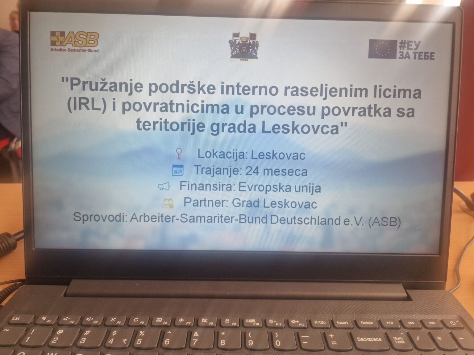 Град Лесковац и организација АСБ постали су партнери на реализацији пројекта „Пружање подршке интерно расељеним лицима и повратницима са територије града Лесковца и окружења“, који је данас представљен у Центру за стручно усавршавање у образовању. Укупна вредност пројекта је 447.313 евра. Европска унија и организација АСБ обезбедиће 407.313 евра, а остатак Град Лесковац.