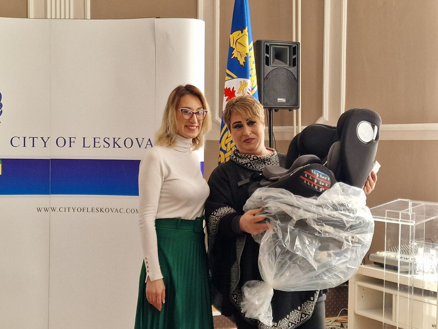 У име градоначелника Лесковца др сци. мед. Горана Цветановића, ауто-седишта је уручила чланица Градског већа Јелена Миљковић, честитавши том приликом свима који су се остварили као родитељи.